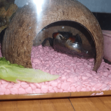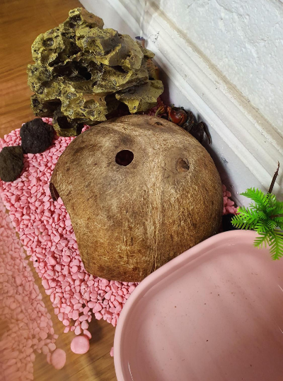 불쌍해 보여서, 마트 가는 날에 은신처, 타넘을 수 있는 돌, 물통, 이것들을 다 집어넣을 수 있는 크기의 새로운 집을 샀다.