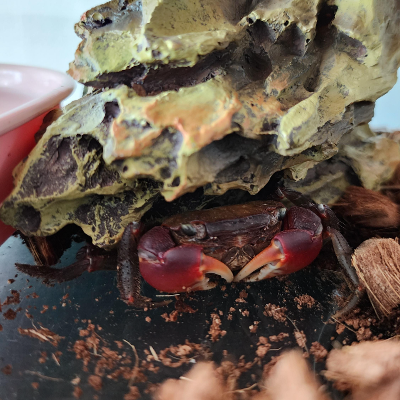 다만 최근에는 성장이 정체된 것인지 1년 넘도록 탈피를 하지 않고 있다. 마지막 탈피가 2022년이었던 것 같은데, 마지막으로 탈피했을 때 아쉽게도 다리 하나가 부절돼서 현재 9개의 다리로 잘 살고 있다. 부절된 마지막 다리는 시간이 지나면서 조금씩 멍울이나 혹처럼 생긴 주머니가 점점 커지면서, 탈피할 때가 임박하면 눈에 띌 정도로 커진다. 그런데 2020년에 처음 도둑게를 받았을 때, 부절됐떤 다리가 재생되는 속도는 상당히 빨랐는데(거의 2~3개월만에 멍울이 눈에 띄게 커졌었고, 얼마 안 있어서 탈피를 했었다), 지금은 거의 1년이 넘도록 재생이 빨리 되지 않는 것을 보면, 이미 나이가 꽤 들어서 그런 것은 아닐까 하는 생각도 든다.